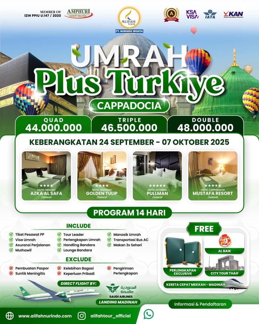 Anda dapat mendaftar secara online melalui website kami atau mengunjungi kantor Alifah Tour di Tangerang untuk pendaftaran langsung.